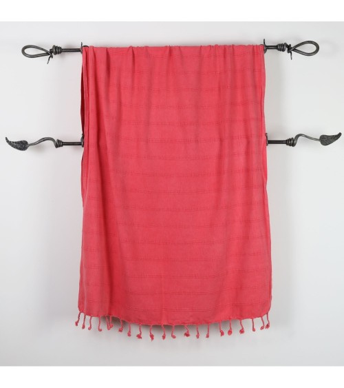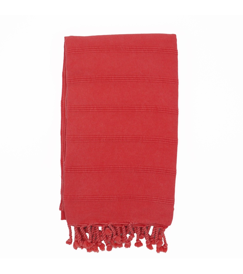 Fouta 100% coton, délavée à l'aide d'une pierre ponce pour le côté vintage et ultra doux,unie corail, réhaussée d'une discrète sur-piqûre pour le côté classique et raffiné. Elle remplace la serviette de bain en éponge en étant plus lègère et absorbante.Simple et élégante, la fouta est un drap de bain tendance et chic, idéal pour la plage, le spa, le hammam, ...Conseils d'entretien de la fouta :Faites tremper votre fouta dans de leau froide avant le premier lavage.Un lavage à 30°C est préférable.Pour que votre fouta gagne en souplesse et douceur, lavez-la régulièrement.