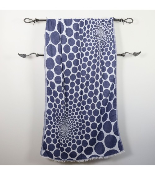 Fouta 100% coton bleu marine, un clin d'il au rétro des années 70 tout en restant moderne et très tendance. Elle remplace la serviette de bain en éponge en étant plus lègère et absorbante.Simple et élégante, la fouta est un drap de bain tendance et chic, idéal pour la plage, le spa, le hammam, ...Conseils d'entretien de la fouta :Faites tremper votre fouta dans de leau froide avant le premier lavage.Un lavage à 30°C est préférable.Pour que votre fouta gagne en souplesse et douceur, lavez-la régulièrement.