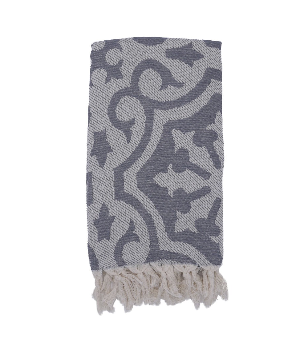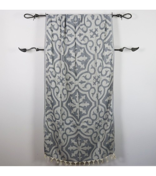 Fouta 100% coton grise, inspiration carreaux de ciment, ce drap de plage baroque et raffiné ravira les plus classiques. Elle remplace la serviette de bain en éponge en étant plus lègère et absorbante.Simple et élégante, la fouta est un drap de bain tendance et chic, idéal pour la plage, le spa, le hammam, ...Conseils d'entretien de la fouta :Faites tremper votre fouta dans de leau froide avant le premier lavage.Un lavage à 30°C est préférable.Pour que votre fouta gagne en souplesse et douceur, lavez-la régulièrement.