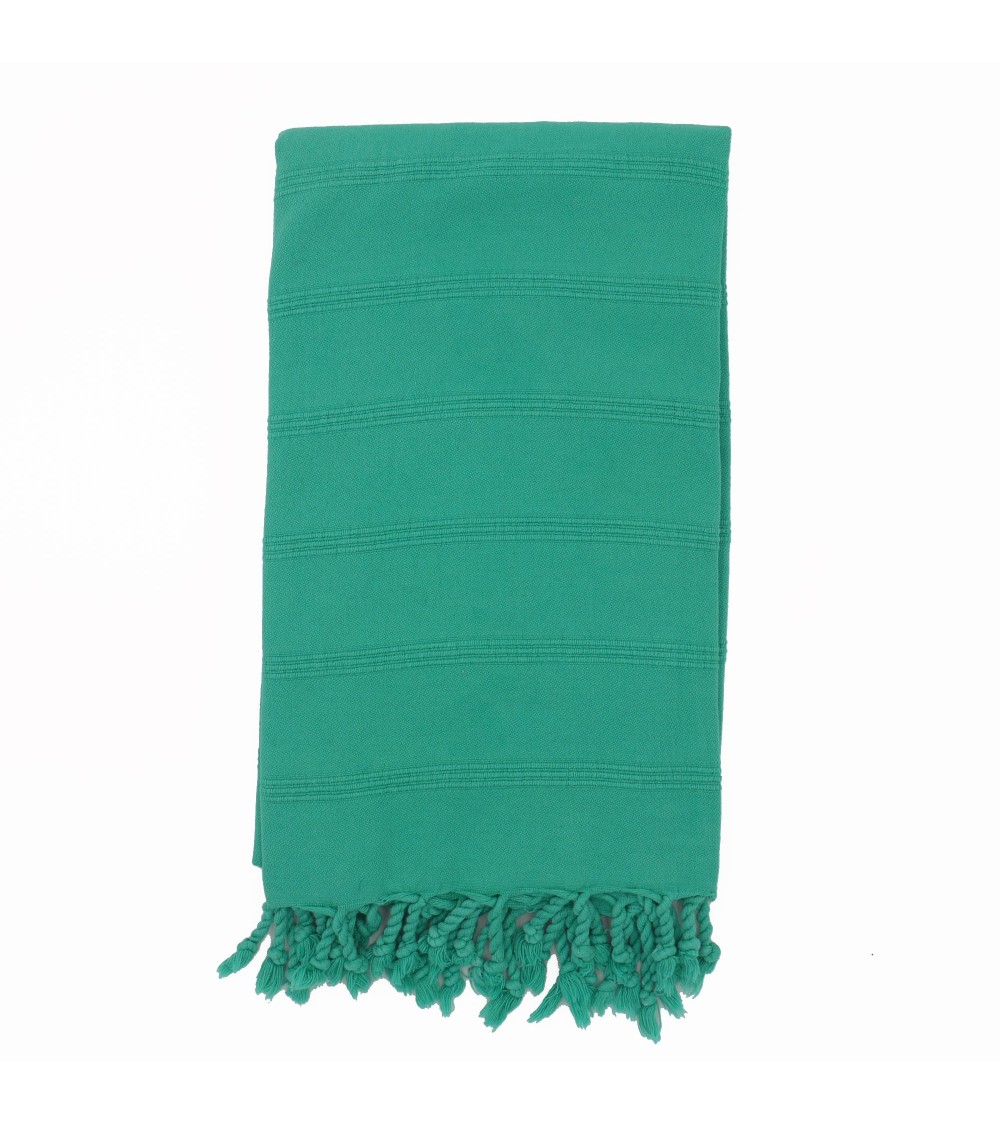 Fouta 100% coton, délavée à l'aide d'une pierre ponce pour le côté vintage et ultra doux,unie vert menthe, réhaussée d'une discrète sur-piqûre pour le côté classique et raffiné. Elle remplace la serviette de bain en éponge en étant plus lègère et absorbante.Simple et élégante, la fouta est un drap de bain tendance et chic, idéal pour la plage, le spa, le hammam, ...Conseils d'entretien de la fouta :Faites tremper votre fouta dans de leau froide avant le premier lavage.Un lavage à 30°C est préférable.Pour que votre fouta gagne en souplesse et douceur, lavez-la régulièrement.
