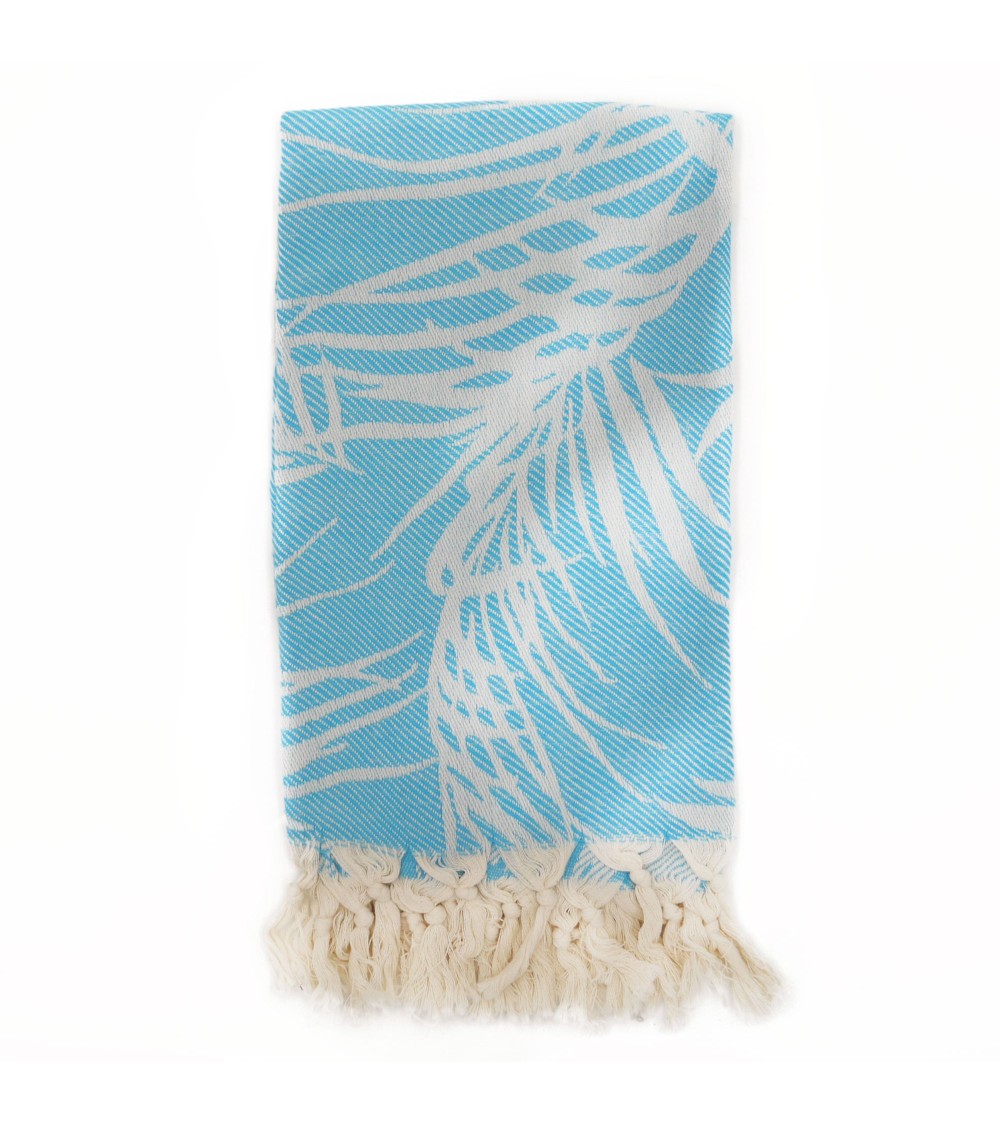 Fouta palmiers 100% coton avec franges turquoise 100x180cm