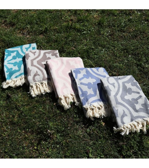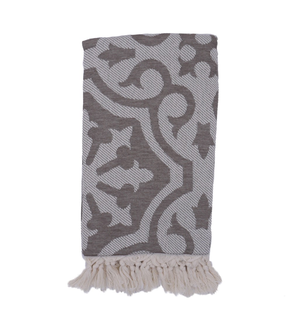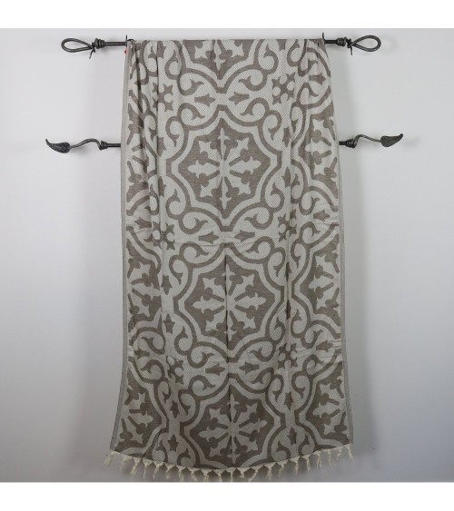 Fouta 100% coton marron, inspiration carreaux de ciment, ce drap de plage baroque et raffiné ravira les plus classiques. Elle remplace la serviette de bain en éponge en étant plus lègère et absorbante.Simple et élégante, la fouta est un drap de bain tendance et chic, idéal pour la plage, le spa, le hammam, ...Conseils d'entretien de la fouta :Faites tremper votre fouta dans de leau froide avant le premier lavage.Un lavage à 30°C est préférable.Pour que votre fouta gagne en souplesse et douceur, lavez-la régulièrement.