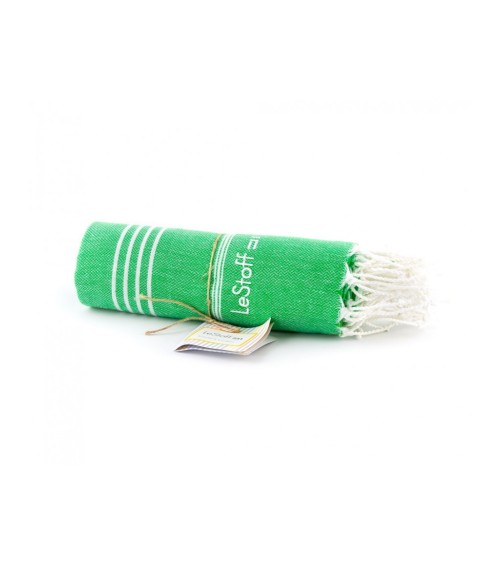 Serviette fouta 100% coton peigné, certifiée sans substances nocives. Doux et hyper absorbant.