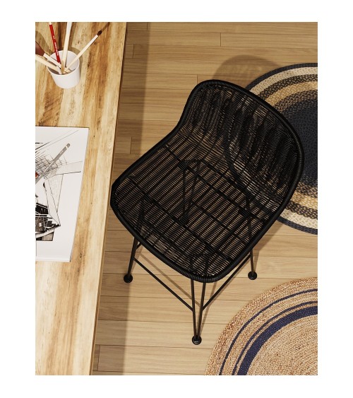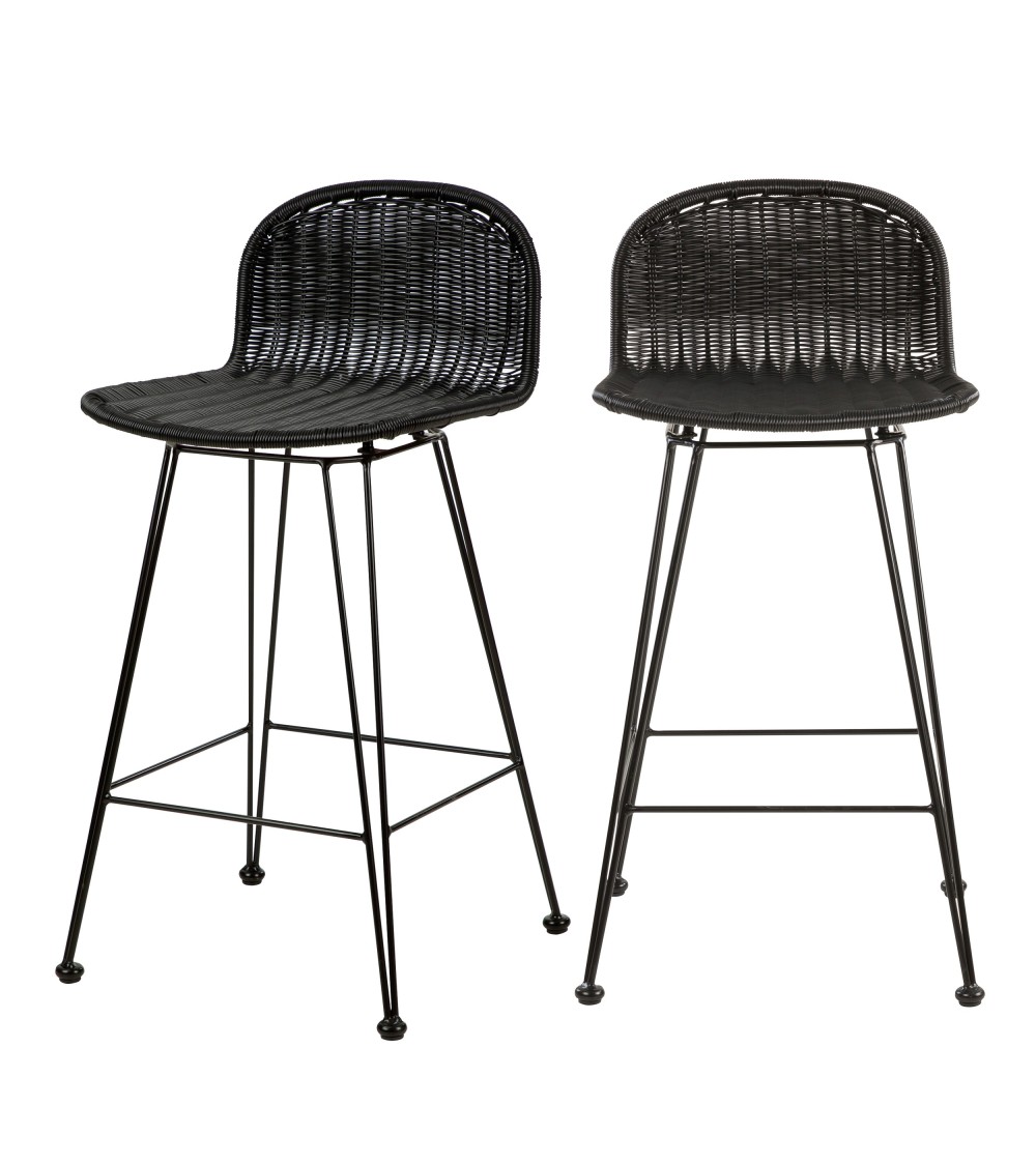 Chaise de bar mi-hauteur 63 cm en résine tressée noire (x2)