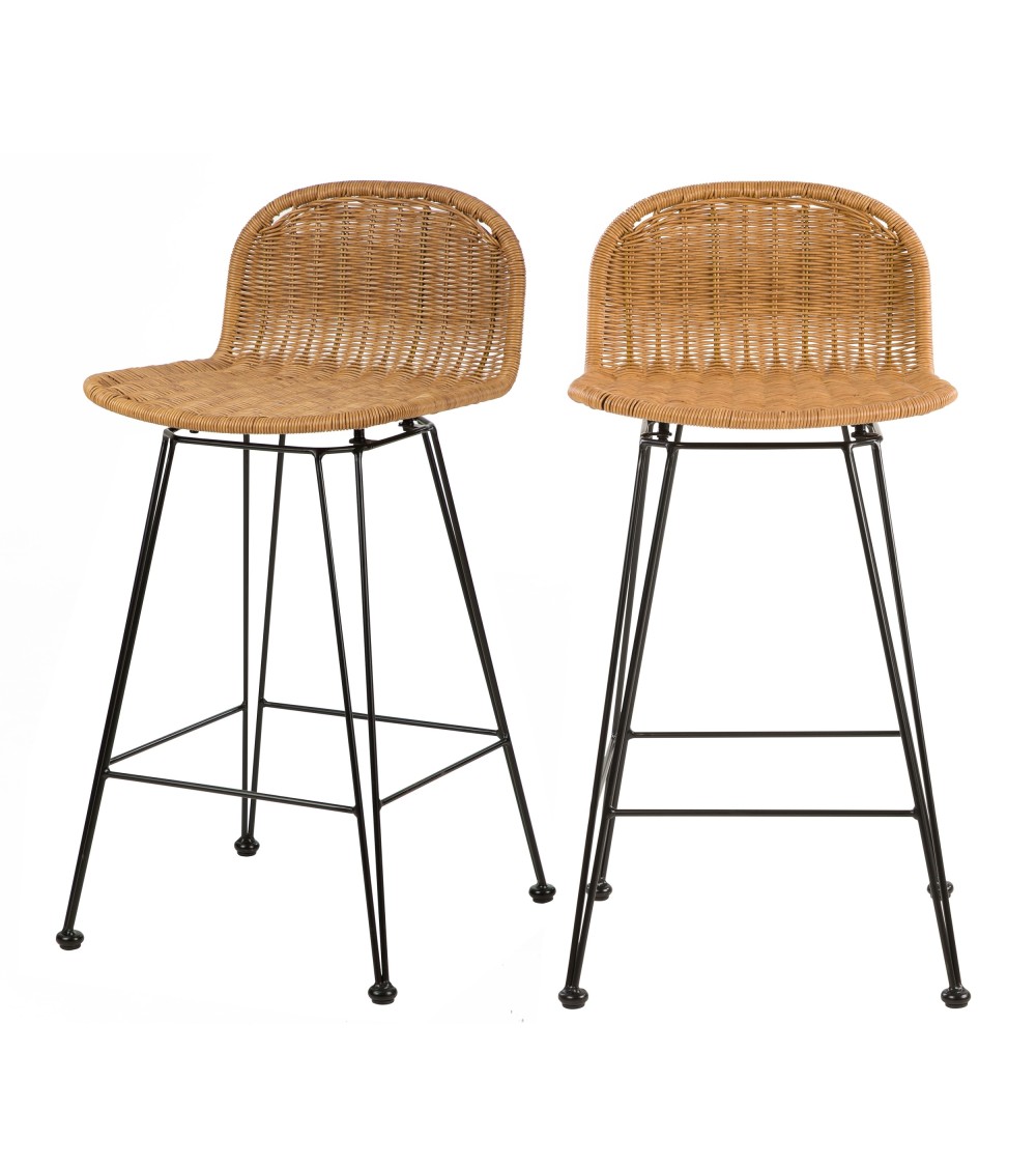 Chaise de bar mi-hauteur 63 cm en résine tressée marron (x2)