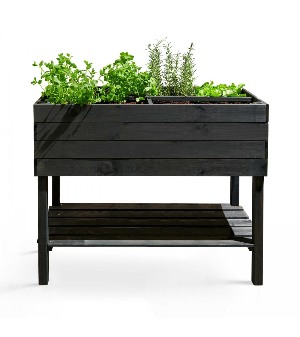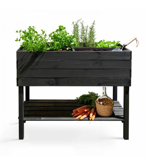 Ce potager en bois FSC rectangulaire sur pieds sera le parfait allié des jardiniers en herbe ou en manque d'espace grâce à ses dimensions avantageuses (Longueur 110cm x Profondeur 50cm x Hauteur 80cm). Fabriqué pour éviter que vous ayez à vous baisser, il vous permettra de faire pousser herbes, fruits et légumes facilement, qu'importe l'espace disponible dans 4 larges compartiments. Equipé d'une tablette basse qui pourra accueillir vos outils de jardin, ce rectangle potager en bois de pin naturel trouvera parfaitement sa place sur vos terrasses et balcons. Existe en deux teintes : Gris Anthracite et Bois Naturel Dimensions Potager : Longueur 110cm x Profondeur 50cm x Hauteur 80cm Pieds : 40x40mm Epaisseur du bois : 12mm Planche inférieur : Hauteur 17cm Bac intérieur : Longueur 97,5cm x Profondeur 47,5cm x Hauteur 28cm Bac extérieur : Longueur 100cm x Profondeur 50cm x Hauteur 31,5cm Matière Bois de pin naturel FSC 4 compartiments Montage A monter soi-même La visserie est fournis Existe en 2 coloris Bois naturel, Gris anthracite Garantie Garantie 2 ans sous respect des règles de montage et d'utilisation
