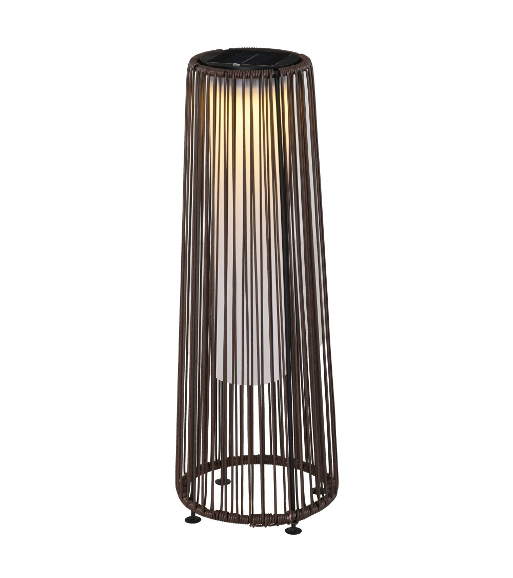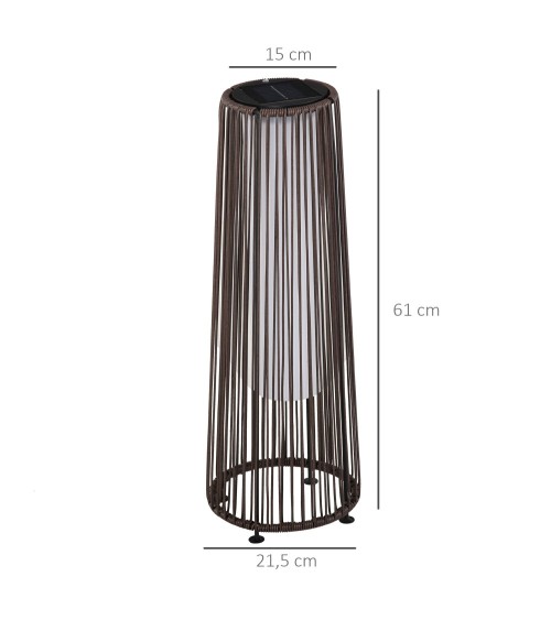 Illuminez votre espace extérieur grâce à ce superbe lampadaire style colonial en résine tressée filaire coloris chocolat. Sur votre terrasse ou dans votre jardin, cette jolie lampe créera une ambiance cosy et chaleureuse. Elle s'intégrera parfaitement à un salon de jardin aux notes exotiques. Caractéristiques : - Donnez à votre jardin ou terrasse un style colonial très élégant avec ce lampadaire d'extérieur LED (Éclairage statique blanc chaud)- Lampadaire idéal afin de créer une ambiance cosy et chaleureuse à votre extérieur- Idéal pour installation sur votre terrasse, dans votre jardin, au bord de la piscine, etc...- Fonctionne à l'énergie solaire économique et respectueuse de l'environnement : capteur solaire intégré- Système interne de gestion de l'éclairage via détecteur de luminosité : lorsque la luminosité est inférieure à 3 lux, le lampadaire s'allume automatiquement et inversement- Capacité de luminosité de 8 heures en continu après charge complète- Conçu et fabriqué à partir de matériaux robustes (métal époxy anticorrosion, résine PE, PP) : stabilité optimale, usage pérenne- Montage facile et rapide à l'aide du manuel d'assemblage illustré Spécifications : - Couleur : chocolat- Matériaux principaux : métal époxy anticorrosion, résine PE, PP- Dimensions totales : Ø 21,5 x 61H cm- Ø base : Ø 15 cm- Dim. panneau solaire : 8,5L x 8,5l cm- Puissance LED : 1,5 W- Durée de charge : 6 heures en plein soleil- Durée d'éclairage (complètement chargé) : 8 heures- Certifications normes CE-LVD, EMC, RoHS- Livraison effectuée en un colis- Réf. : 866-006BN