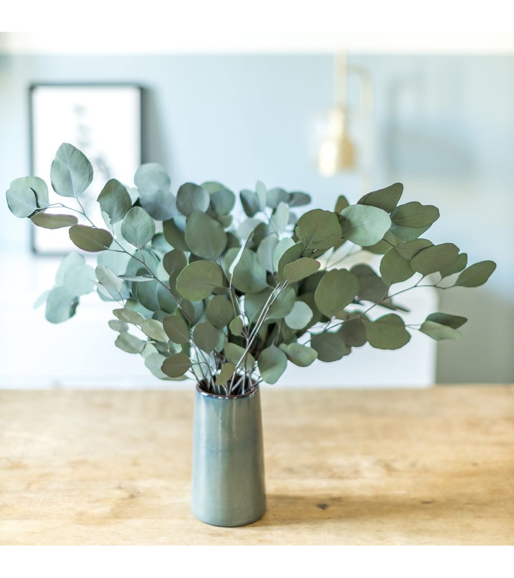Relevez votre décoration d'intérieur pendant de nombreuses années grâce à cette botte d'eucalyptus populus stabilisé. Nos plantes sont naturelles. Elles ne s'exposent qu'en intérieur à l'abris des courants d'air et de la lumière directe du soleil. Evitez également de les placer dans des pièces très humides. Manipulez-les avec délicatesse (le séchage et la stabilisation fragilisent les plantes). Elles ne requièrent aucun entretien, aucun arrosage, aucune luminosité particulière. Elles gardent leur fraîcheur et leur souplesse pendant plusieurs années. A placer dans un vase sans eau. Caractéristiques techniques : Bouquet de 150g Origine : France Couleur : VertLongueur min (cm) : 50 Longueur max (cm) : 70