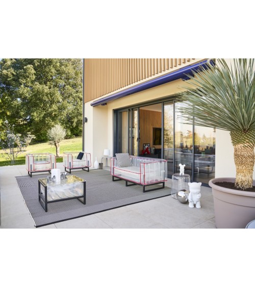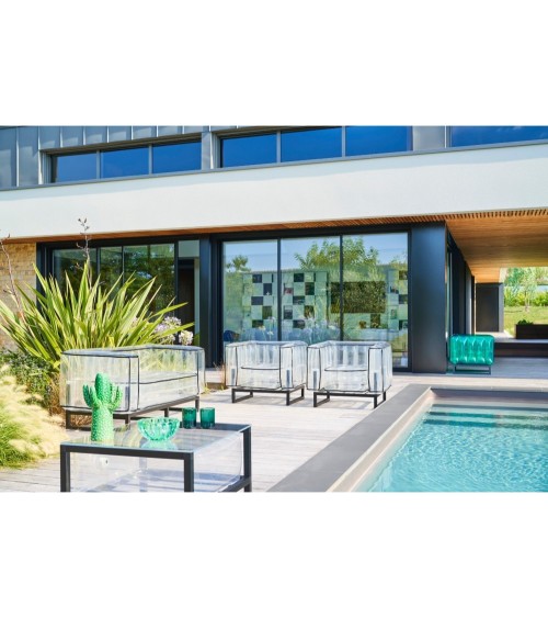 Le salon de jardin YOMI cristal se pare dun élégant passepoil qui souligne ses formes contemporaines. Ce détail de caractère, cousu main, se marie à merveille avec la transparence de la matière. Déclinés en blanc, rouge ou noir, le mobilier MOJOW entre dans une nouvelle dimension, affirme son design, et sa singularité pour tous les lieux de vie in & outdoor.