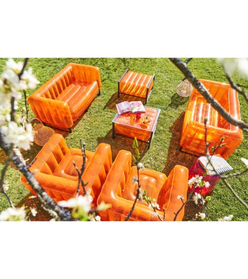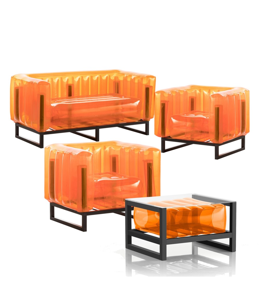 Produit à usages professionnels et particuliers Salon de jardin moderne au design français intemporel, produit en matériaux hyper résistants et éco-responsables, le style épuré et fun de votre salon de jardin Yomi Eko trouvera aisément sa place au bord de la piscine ou sur votre terrasse. Assemblez les fauteuils, canapés et tables basses d'extérieur Mojow, pour créer votre salon de jardin design moderne, élégant et original.Dimensions : Canapé: 151x76,5x69,5cm / Poids: 14,3 kg - Fauteuil: 83x76,5x69,5 cm / Poids: 9,6 kg - Table basse: 40x72x62 cm / Poids: 11,5 kg.TPU : Nouvelle matière recyclable et biodégradable, inodore et ne contenant pas de chlore. Le TPU est une matière « froide ». Les modèles transparents ont la particularité de laisser passer les rayons du soleil, ce qui permet de ne pas sy brûler lorsquils sont exposés en plein soleil !Entretien facile: Nettoyer à l'eau savoneuse. Pas de produit chimique. Produits livrés démontés dans de petites valises très facile à transporter et à stocker. Une pompe est offerte à chaque commande.Les points forts :* Ideal en intérieur comme en extérieur* Très facile et rapide à monter / ranger* Facile d'entretien* Ne chauffe pas avec le soleilCe mobilier gonflable Design est très léger et peut se déplacer facilement ce qui sera parfait pour équiper vos bureaux, vos halls d'entrées ou bien même apporter une touche Fun et Coloré pour vos évenements.Seulement quelques barres à assembler, un matelas à gonfler et vous voila prêt à profiter de votre Mojow.Structure : Aluminium noirMatelas gonflable : TPU (éco-responsable et biodégradable)Hauteur d'assise : 41cm