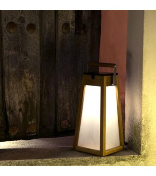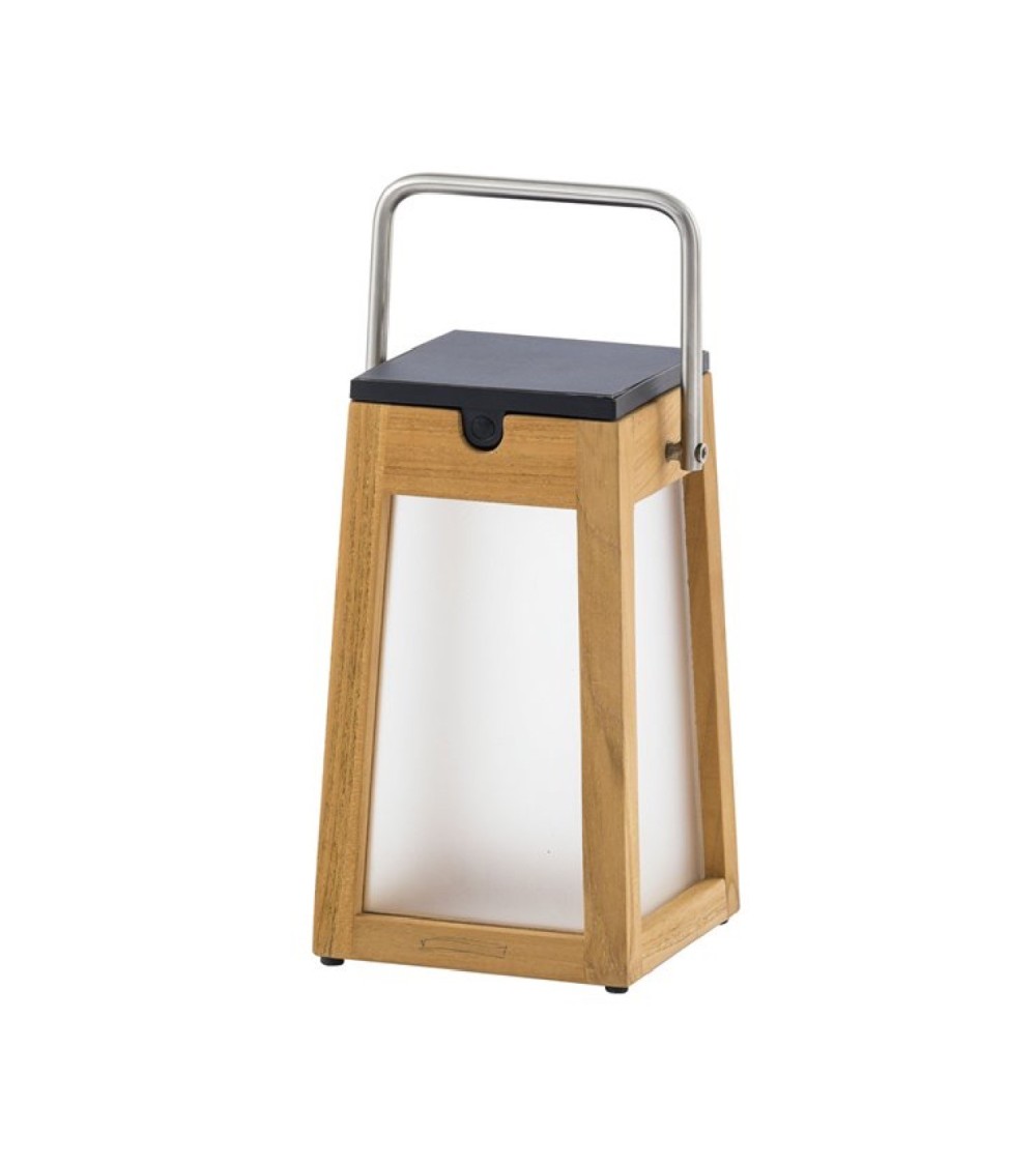 Lanterne d'extérieur LED rechargeable & solaire bois/inox