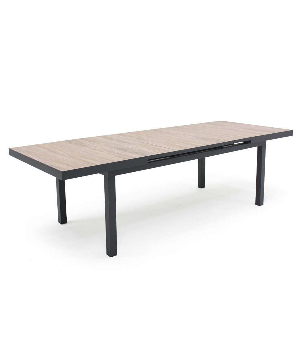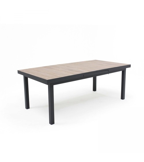Table extensible aluminium et céramique imitation bois