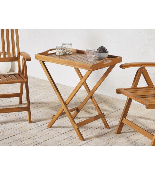 Asseyez-vous confortablement et dégustez votre café du matin sur le balcon avec cette table à thé pratique. Fabriquée en bois d'acacia de haute qualité, elle s'intègre parfaitement à presque tous les environnements grâce à sa finition naturelle et claire. Le plateau supérieur peut être retiré tandis que le cadre est pliable pour un rangement facile.