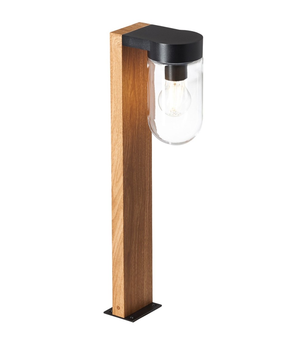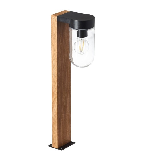 Illuminez votre aménagement extérieur avec cette superbe borne de la gamme CABAR. Conçue dans une structure en bois foncé naturel avec quelques touches de métal noir et un diffuseur en verre transparent, elle arbore un look moderne qui apportera une touche contemporaine à votre décoration. Parfaite dans votre jardin par exemple pour illuminer vos moments de partage, elle trouvera également sans aucun doute sa place le long de votre chemin ou bien autour de votre maison en guise de balisage pour une lumière fonctionnelle et une sécurité renforcée. Cette borne dispose d'un indice de protection IP44 qui la protège contre les projections d'eau, idéal pour une installation en extérieur en tout sécurité ! Luminaire équipé d'une douille E27 compatible avec une ampoule d'une puissance maximale de 40W (ampoule non incluse). Dimensions : hauteur 55cm x largeur 10cm x profondeur 16cm. Existe également dans la même collection CABAR en version applique murale. Les plus du produit : Matériau résistant - Lumière homogène - Ampoule à personnaliser Caractéristiques : - Douille : E27 - Puissance : 40W - IP : 44 - Matière : metal