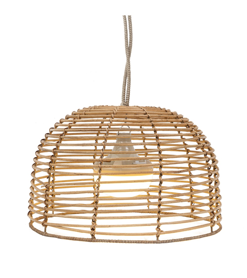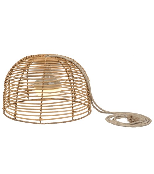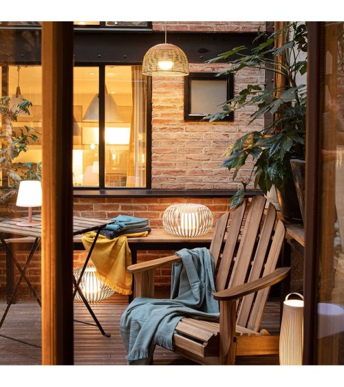 On adore cette suspension nature de la collection BOSSA ! Fabriquée en fibres naturelles, elle apportera une touche exotique cocooning ultra tendance à votre aménagement extérieur. Conçue dans une structure ronde et ajourée, cette suspension ne manquera pas de sublimer vos soirées, qu'elles soient en famille, entre amis ou tout simplement en amoureux. La suspension d'extérieur BOSSA est également équipée de la technologie LED intégrée pour vous fournir une belle lumière intense et chaleureuse de 500 lumens au quotidien, tout en vous faisant faire des économies d'énergie (5W). Le plus ? Ce luminaire est dimmable, vous permettant ainsi de pouvoir faire varier votre intensité lumineuse de 0 à 100% comme bon vous semble au cours de la journée, en fonction de vos besoins et envies. Alimentation par micro USB. Autonomie de 6 à 20h en fonction de la puissance de la charge. Dimensions : hauteur 22cm x diamètre 35cm x longueur câble 300cm. Fabriqué en Espagne. Les plus du produit : Matière naturelle - Eclairage LED - Lumière tamisée Caractéristiques : - Douille : Led int - Puissance : 5W - IP : 54 - Matière : BOIS