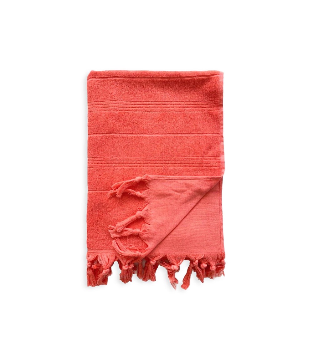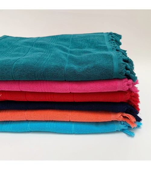 La Fouta Hammam en éponge bouclette a l'aspect d'une Fouta grâce à sa finition avec franges nouées et a l'également l'aspect d'une serviette de bain traditionnelle avec sa finition en éponge bouclette. Elle n'est pas doublée éponge , elle est en éponge. Cette Fouta remporte un vif succès chez notre clientèle depuis déjà plusieurs années. Elle trouvera sa place dans votre salle de bain, au bord des piscines, sur la plage et également dans votre valise, car peu encombrante. Nouée autour de votre taille, elle se transforme en paréo. Discrète et raffinée ses coloris unis en font un article idéal pour tous et facile à offrir.Dimension : 90x160cmGrammage : 330g/m²Composition : 100 % Coton Label Oeko-TEXAspect : recto éponge bouclette , verso coton tisséFinition: franges nouées