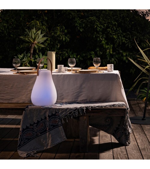 Cette lampe moderne KURBY vous étonnera par son design tendance et ses fonctionnalités astucieuses. Conçue en PVC de couleur blanc translucide, elle possède une anse en métal qui vous permettra de la transporter partout où vous le souhaitez. Sur votre terrasse ou dans votre jardin, cette lampe à poser accompagnera vos moments quotidiens d'une belle lumière chaleureuse et instaurera une ambiance conviviale. Ce luminaire est équipé d'un haut-parleur Bluetooth, pour pouvoir écouter vos musiques préférées à tout moment de la journée. Sa technologie LED intégrée vous fera profiter d'un éclairage économe (0.5W), durable et harmonieux avec une douce intensité de 35 lumens. Cette lampe KURBY de 37cm de hauteur bénéficie d'un indice de protection IP54 pour un usage adapté en extérieur et une résistance aux chocs et aux intempéries. Le plus ? Avec ce luminaire, vous pourrez varier votre intensité lumineuse de 0 à 100% sans palier ainsi que la couleur de votre lumière en fonction de vos envies et de vos besoins quotidiens (fonctionnalité RVB). KURBY joue la lumière et la musique partout avec vous ! Fabriqué en Espagne. Les plus du produit : Eclairage LED - Anti-éblouissement - Variateur d'intensité lumineuse Caractéristiques : - Douille : Led int - Puissance : 0,5W - IP : 54 - Matière : pvc_synthetic