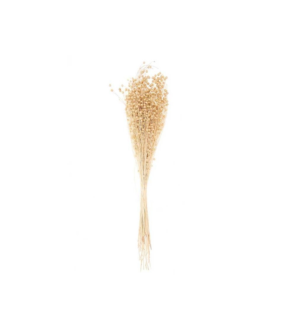 Décorez votre intérieur avec ces grandes tiges de lins séchées naturelle de 70 cm. Dans un vase ou un pot, seul ou en bouquet, vous pourrez faire de belles créations. Vous pouvez également les placer sur un support en bois pour fleurs séchées. Ces lins de couleur naturelle s'associeront parfaitement avec des fleurs séchées colorées comme du lagurus jaune ou du cardère japonais rose. L'idée de l'équipe : avec un anneau en bambou, réalisez une couronne de fleurs. Suspendez-la dans votre intérieur. Effet splendide garanti ! Ces 6 lins séchées de Rico Design sont de vraies fleurs et ne doivent pas être arrosées. Elles ont la couleur naturelle de la plante : blanc.