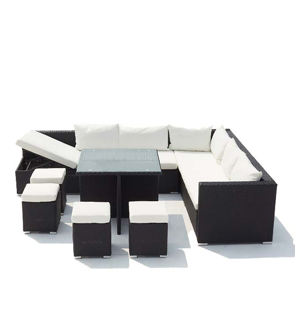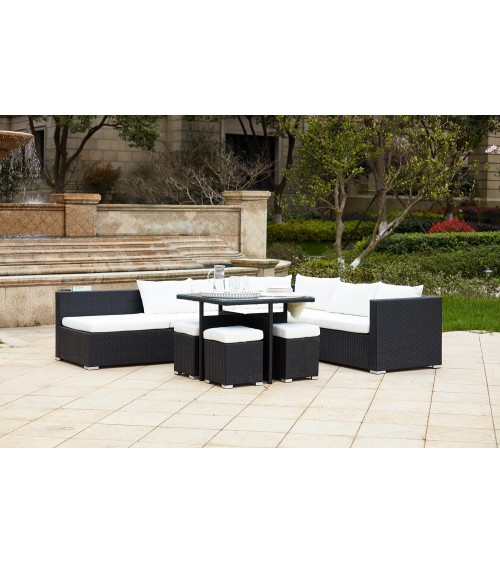 Salon de jardin encastrable 10 places en résine noir/blanc