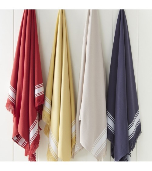 Le Le drap de plage BAHAMAS est idéal pour les virées en bord de plage ou à la piscine. Tissé façon fouta en une face éponge et une face lisse, il est léger, il absorbe idéalement (340gr/m²) et sèche en un tour de main grâce à sa matière 100% coton. Pour l'été, le drap de plage BAHAMAS s'adapte à la saison puisqu'il est proposé sur de belles couleurs éclatantes : corail, cardinal, soleil, cobalt, eucalyptus, sable et plus encore... Disponible en taille 100x180cm.Notre fouta est tissée en une face lisse pour plus de légèreté et une face éponge pour plus d'absorption. Son poids en 340 g/m² lui permet de ne pas prendre trop de place dans votre sac ou valise, et d'être très confortable à utiliser.Retrouvez nos autres modèles de draps de plage en faisant la recherche Sensei plage.Caractéristiques de la serviette de plage Sensei Maison :? 100% coton de qualité supérieure? Taille : 100x180 cm? 340 g/m², il est léger et très absorbant? Uni avec un large choix de couleur? Facile d'entretien Lavable en machine 60° Séchage modéréDepuis des décennies, Sensei Maison vise à rendre vos intérieurs cocooning. Au travers de nos collections tendances, uniques et design notre ambition a toujours été de privilégier un rapport qualité/prix le plus juste. En savoir plus :Ce produit est certifié de la norme OEKO-TEX® Standard 100 Cette certification vise à garantir la non-toxicité des textiles et des colorants