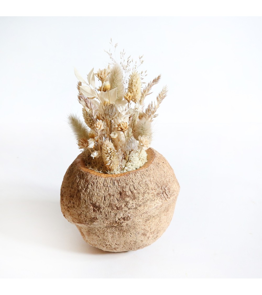 En intégrant consciemment la nature dans la décoration intérieure, nous nous reconnectons inconsciemment, nous réintégrons la nature à notre mondeVoici une décoration florale tout à fait originale, puisqu'elle est réalisée dans une noix naturelle : La noix de Sapucaja aussi appelée marmite des singes est le fruit qui provient dun arbre nommé Lecythis ollaria originaire dAmérique tropicale. Création faite avec des fleurs séchées et du lichen stabilisé. 100% naturelle et intemporelle.Idéale en décoration intérieure ou en centre de table.Ne nécessite ni arrosage, ni lumière, ni entretien. Création durable et écoresponsable.Ne convient pas à l'extérieur.Photos non contractuelles. Chaque noix de Sapucaja a une forme singulière. Il s'agit d'une? création unique de la nature. Votre achat comportera toujours : les mêmes couleurs, les mêmes végétaux et les mêmes codes graphiques de composition.