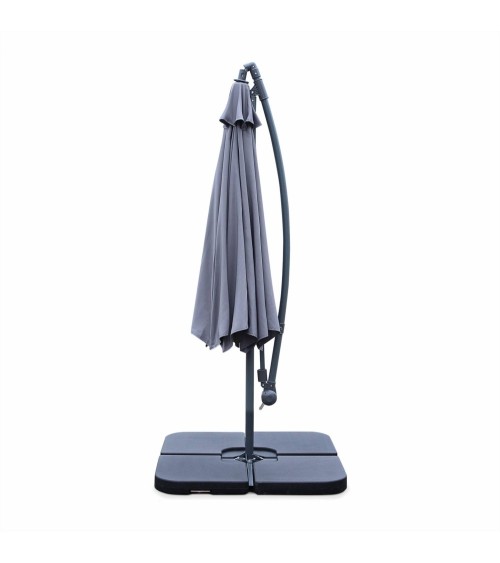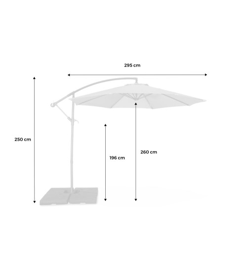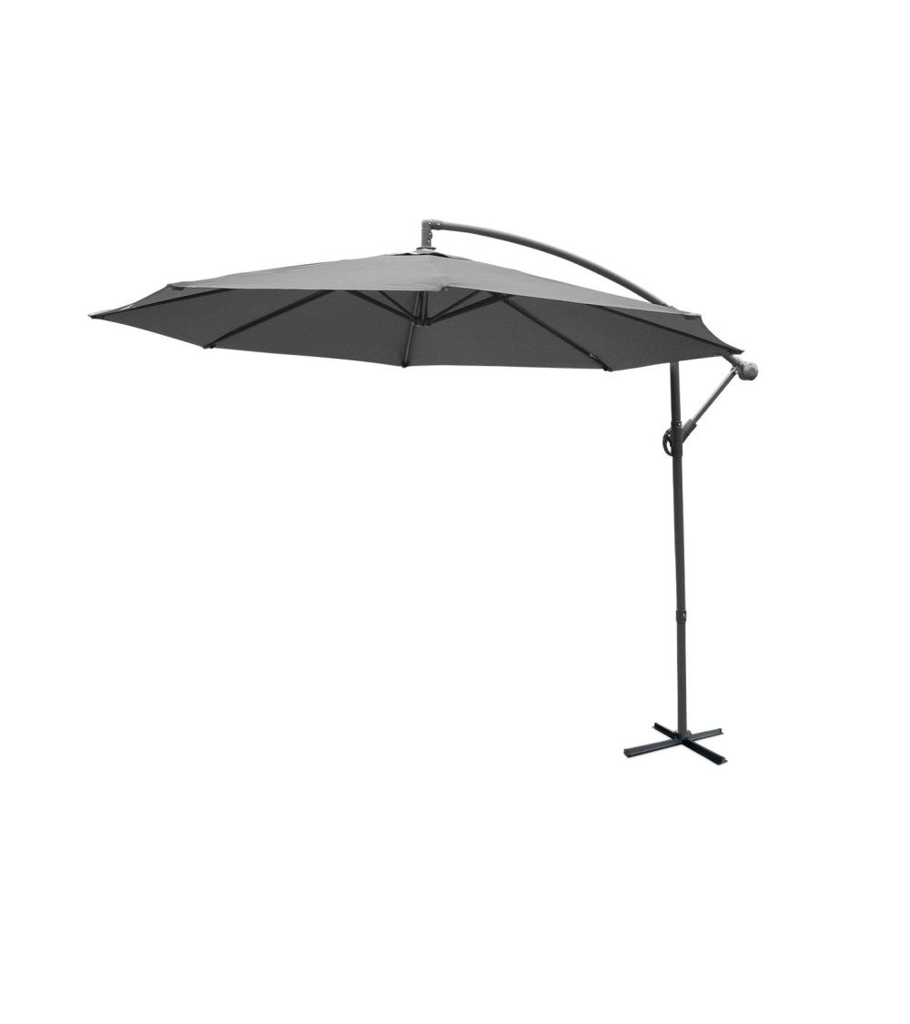 Hardelot, parasol déporté rond 300cm de diamètreLes + produitManivelle anti-retour,Pied en croix pour plus de stabilitéToile déperlante 180g/m²Auvent sur le sommet Parasol déporté moderne et chicAvec une toile de forme octogonale et un mât déporté, le parasol Hardelot est résolument moderne. Son design simple et épuré en fait un parasol de jardin chic, qui trouve sa place aisément dans tous les environnements.Par ailleurs, le Hardelot est un parasol pratique. Il est doté dune manivelle anti-retour et souvre et se ferme facilement. Pour permettre à lair de circuler et éviter quil prenne le vent, le Hardelot possède un auvent sur le sommet. Son pied en croix lui confère une bonne stabilité. Il peut être fixé dans un sol dur ou lesté avec des dalles dédiées.Des matériaux de qualité pour une bonne longévitéAvec une structure en acier renforcé et lensemble des éléments métalliques recouverts dune peinture adaptée à lextérieur, le parasol Hardelot promet une bonne longévité. La poignée de serrage et les jointures sont en plastique et rivetées. Le parasol est ainsi maniable et fiable. La toile en polyester (180g/m2) est déperlante au contact de leau grâce au produit hydrofuge dont elle est enduite.Spécifications techniques Toile de 3m de diamètre, environ 7m²Toile de 180 gr/m2 env. avec aération au sommetLarmature et les 8 baleines