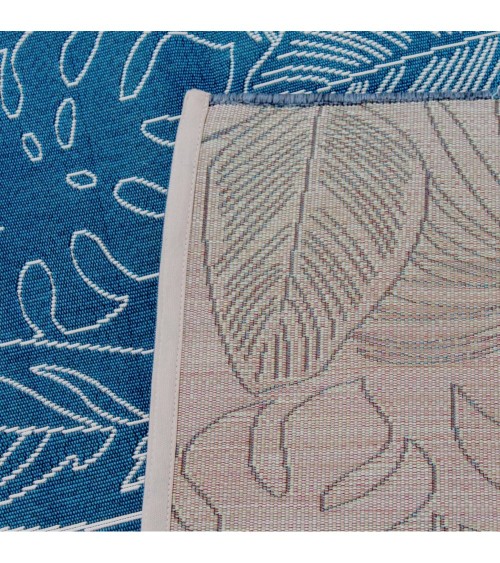 Tapis extérieur/intérieur 160 x 230 bleu canard avec motif exotique