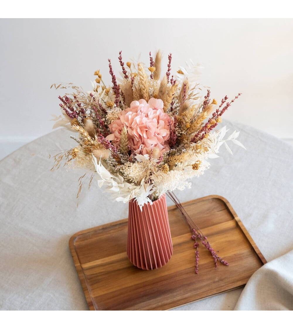 Notre bouquet de fleurs séchées et stabilisées à la forme déstructurée est l'incarnation de l'élégance sauvage. Composé d'eucalyptus stabilisé et d'achillées jaunes, ce bouquet est le choix parfait pour ceux qui apprécient la beauté naturelle et décontractée des fleurs sauvages. L'eucalyptus stabilisé ajoute une touche de verdure fraîche et de dynamisme au bouquet, tandis que les achillées jaunes vibrantes apportent une touche de couleur joyeuse et ensoleillée. La forme déstructurée du bouquet donne une touche naturelle et spontanée, parfait pour un style bohème chic. Chaque tige de fleur est soigneusement sélectionnée pour sa beauté et sa qualité, l'eucalyptus est stabilisée pour conserver sa forme, sa couleur, son odeur et sa texture. Le résultat est un bouquet de fleurs qui dure des mois, voire des années, sans nécessiter d'entretien. Retrouvez également nos autres bouquets de fleurs séchées ou une autre création en fleurs séchées.