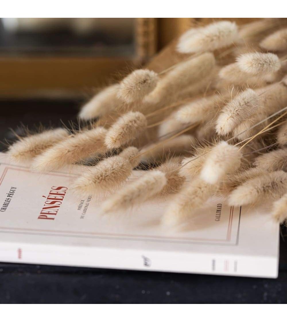 Les lagurus séchés naturels sont parfaits pour une décoration champêtre. Placez-les dans un vase ou confectionnez un bouquet avec de l'eucalyptus et du blé. Pour les conserver, évitez la lumière directe et l'humidité. 10% de remise dès 5 bottes achetées.