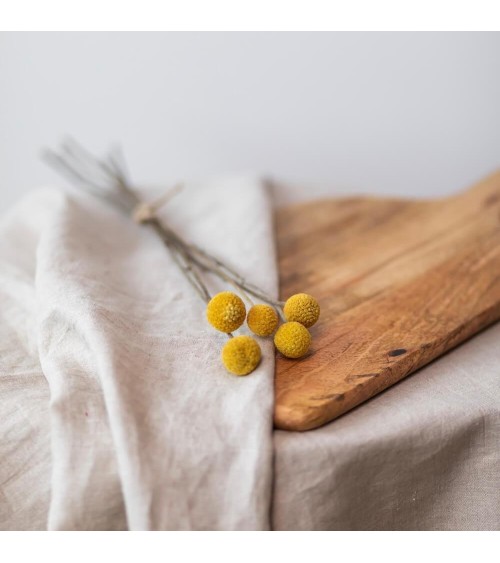 Le craspédia est une fleur séchée naturelle avec un pompon jaune rond qui apporte de la couleur et du pep's aux compositions florales. Chez Flowrette, nous aimons l'associer à d'autres fleurs pour un rendu champêtre. Retrouvez toutes nos bottes de fleurs séchées pour les amateurs de DIY et les apprentis fleuristes. (29 mots)