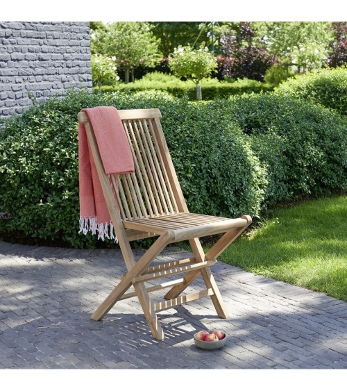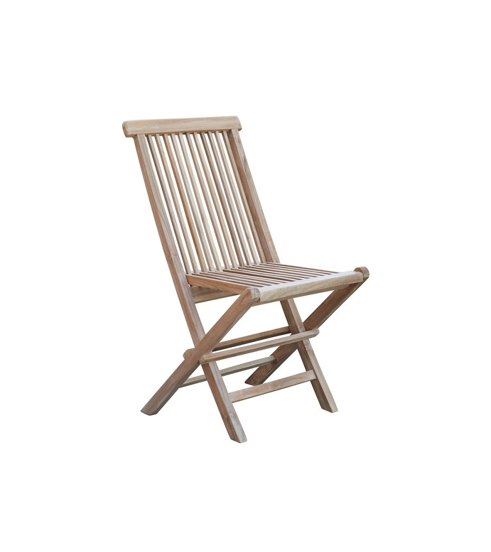 Cette chaise pliante en teck brut massif est un incontournable ! Confortable et classique, cette chaise en teck s'adaptera à de nombreux modèles de salon. Très pratique, elle se range en toute simplicité. Caractéristiques : Matière : Teck brut de qualité premium - Couleur : Bois clair - Hauteur : 89 cm - Profondeur : 42 cm - Largeur : 46,5 cm - Poids : 7 kg - Garantie : 5 ans - Montage : Livrée montée. Les + : Chaise pliante Visserie laiton.
