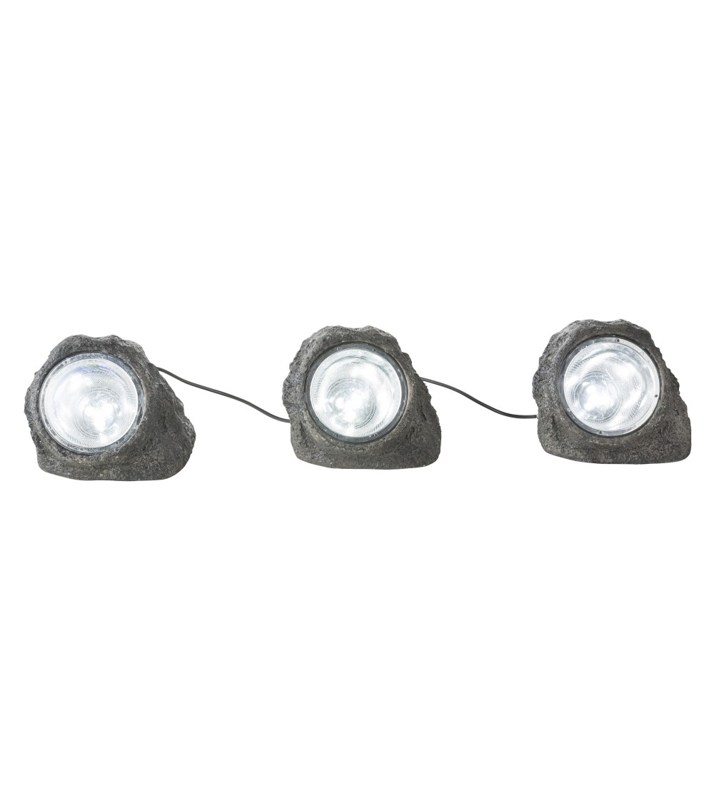 Apportez une touche originale à votre décoration de jardin avec ce set de 3 rochers lumineux FLO. Fabriqués en plastique gris, leur look sobre et semblable à de vrais rochers instaureront sans aucun doute une ambiance nature et tamisée à votre extérieur. Profitez d'une belle source lumineuse douce (25 lumens) grâce à la technologie LED intégrée, amusante et économe avec une consommation de seulement 3x1W, pour une ambiance cocooning assurée. Ils bénéficient également d'un indice de protection IP44 pour un usage adapté en extérieur, même en cas de fortes pluies. Notre astuce déco : amusez-vous et créez des jeux de lumière en positionnant vos rochers solaires proche de votre chemin de maison, autour d'un arbre ou d'un pot de fleur. Les plus du produit : Facile à installer - Eclairage d'ambiance - Economie d'énergie Caractéristiques : - Douille : Led int - Puissance : 1W - IP : 44 - Matière : pvc_synthetic