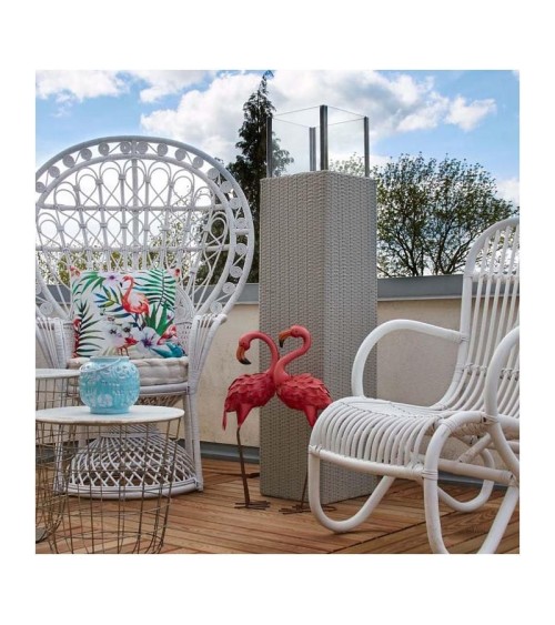 Photophore d'extérieur gris en résine et verre hauteur 139 cm