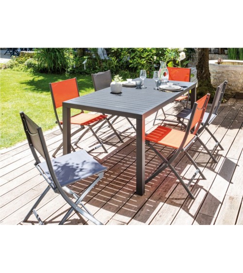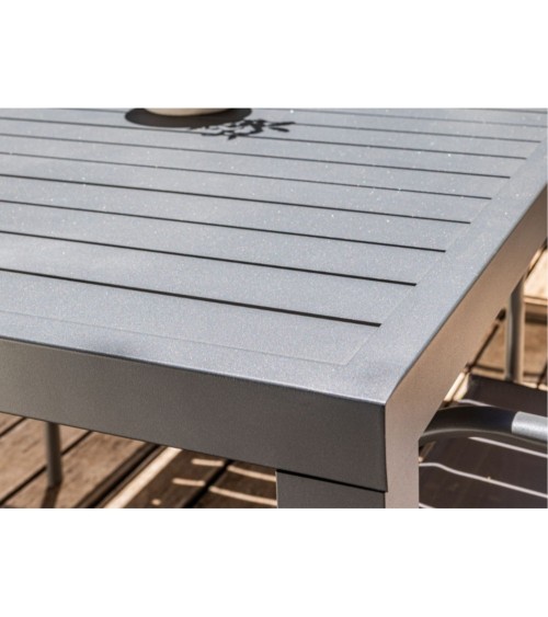 Table extérieure en aluminium plateau à lattes 8 personnes
