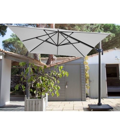 Aspect : Coloris : BlancFinitions : Traité déperlantMatériau principal : Toile polyester 250 grMatériaux secondaires : Aluminium (mât)Dimensions : Hauteur (en cm) : 280,00Longueur (en cm) : 400Profondeur (en cm) : 300,00Autres caractéristiques : Informations complémentaires : Inclinable Mât de 53x77 mm Platine tournante 360° Ouverture avec manivelle Pieds en croix à lester (dalles non fournies) Cheminée de décompression 8 baleines aluminium Poids (en kg) : 27,00 Toile polyester 210 gr/m², déperlantMât aluminium 53/77 mm + 8 baleinesOuverture facile par manivelle + inclinable et pivotantPied en croix à lester (dalles non fournies)Longueur 4 m , Largeur 3 m , Hauteur 2,8 m
