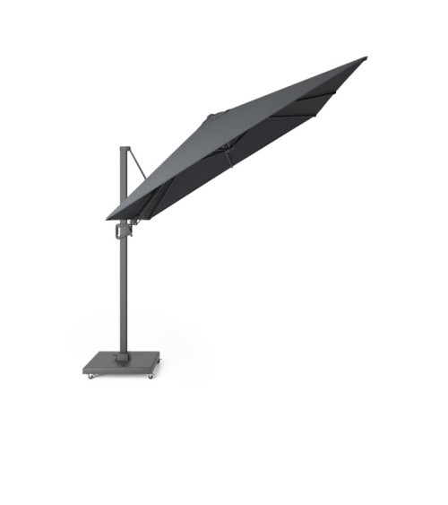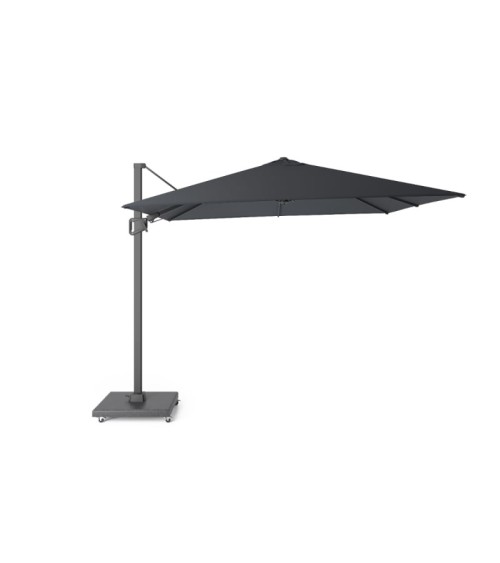 Parasol carré déporté de 3x3 m Helios. Double inclinaison, rotatif à 360 degrés. Toile déperlante en polyester de 220g/m². Hydrofuge et antisalissures. UPF 35. Disponible en plusieurs couleurs de toile. Ouverture facile par manivelle. Cheminée daération. Armature en aluminium, 8 baleines. Important : pied et housse vendus séparément. Conseil : nous recommandons un pied de 90 kg minimum, 120 kg en cas d'exposition au vent. Pour protéger et préserver votre parasol nous vous conseillons les housses de protection Aerocover vendues à part.
