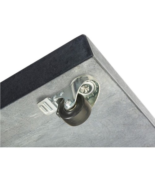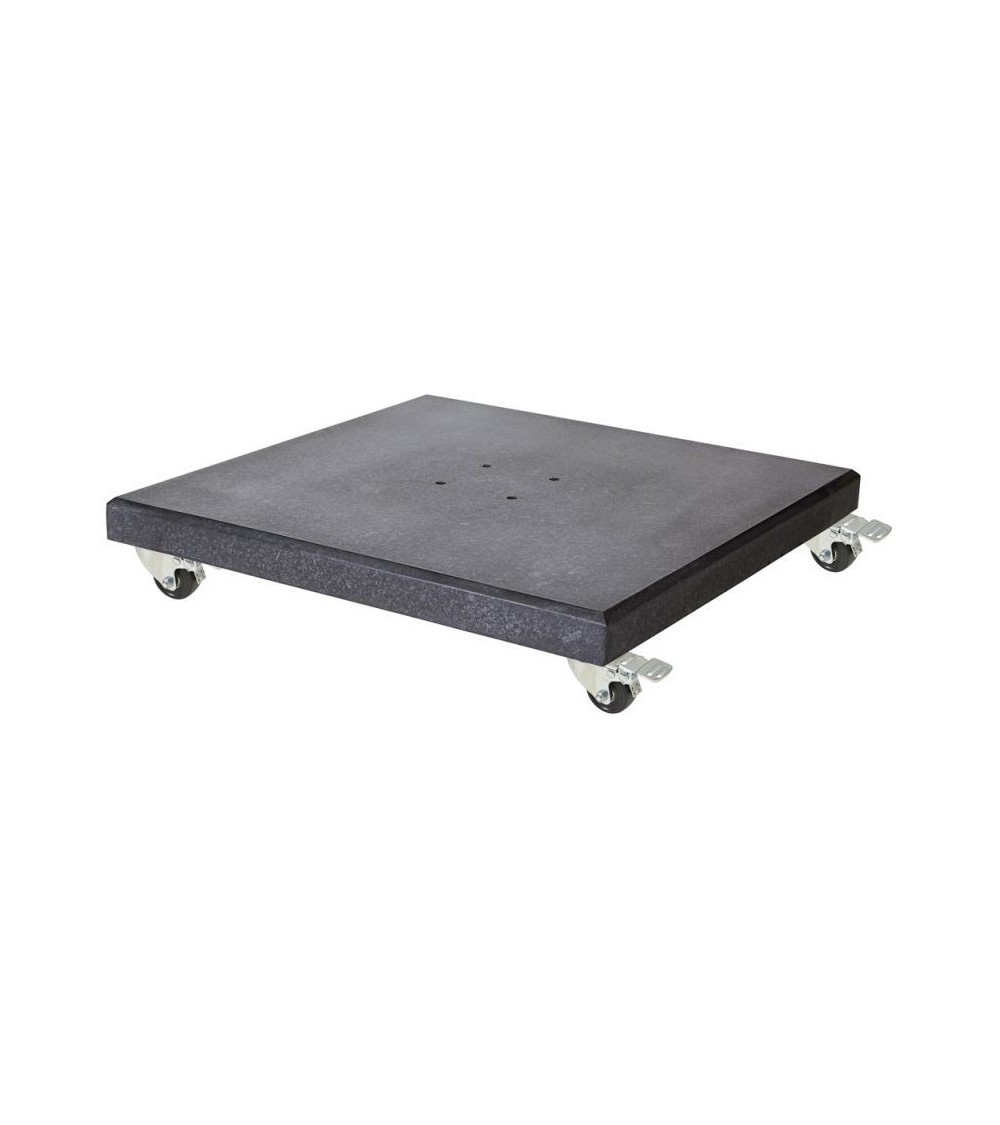 Pied de parasol 120 kg en granite Modena de la marque Platinum. Idéal pour les parasols déportés dont la toile mesure 3x3 mètre. Ce pied de parasol de 150 kg peut aussi être utilisé avec tous les modèles plus petits de parasols Platinum. Dimensions : 76 x 76 x 14,5 cm. Espace entre les trous : 11,30 cm. Couleur : noir. Monté sur roulettes. Important : la couleur noire du pied de parasol peut se ternir avec le temps et les intempéries. Cette évolution du granite n'engendre aucune conséquence sur la solidité du pied, et n'est donc pas prise en charge dans la garantie. Pour garder la couleur de votre pied le plus longtemps possible, nous vous conseillons d'appliquer un intensificateur de couleur.