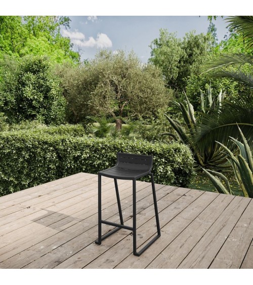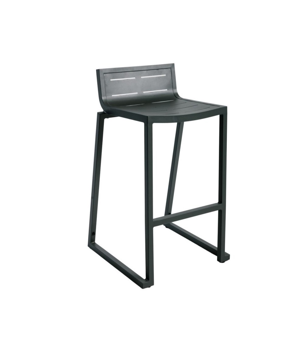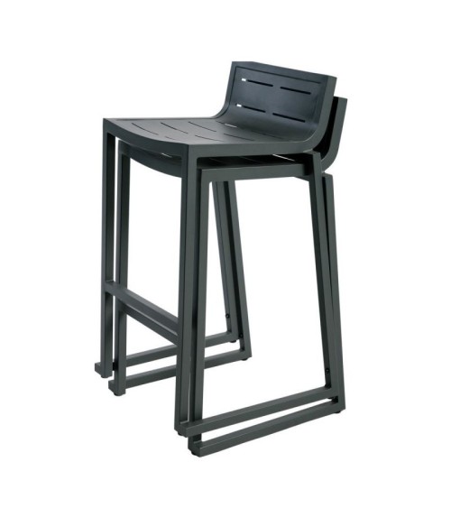 Tabouret de bar en aluminium gris. Envie dun bar en extérieur ? Le tabouret de jardin Inari répondra à vos attentes. Léger grâce à sa composition en aluminium. Sobre par sa couleur gris anthracite et sa finition ajourée au niveau de lassise. Dimensions : L43 x 48 x H83 cm. Garantie : 2 ans. A monter soi-même.