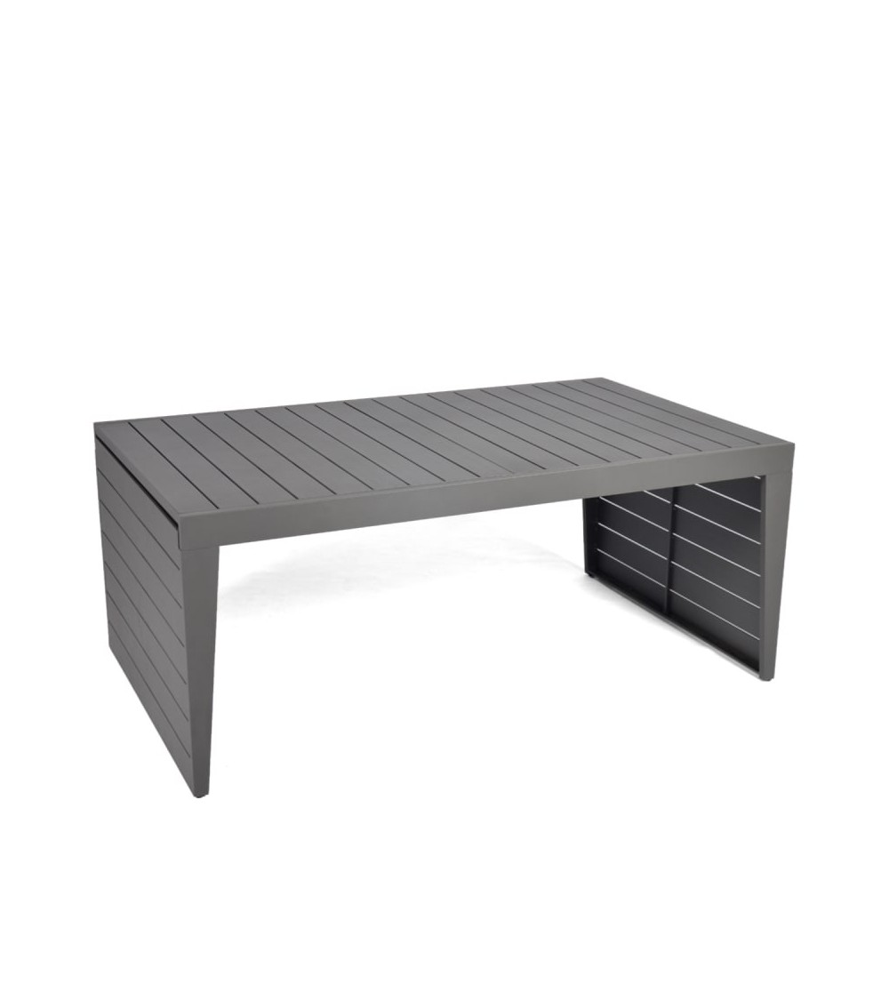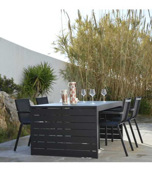 Table dextérieur rectangle ajourée en aluminium Maupiti. Dimensions : L180/240 x l100 x H75cm. Matière : aluminium. Rallonge automatique. Nombre de places : 8. La rallonge est placée sous le plateau, pour l'installer il suffit de tirer sur un des côtés. Structure tout en aluminium et design recherché pour un extérieur qui se démarque des autres, optez pour la table de jardin gris anthracite Maupiti.