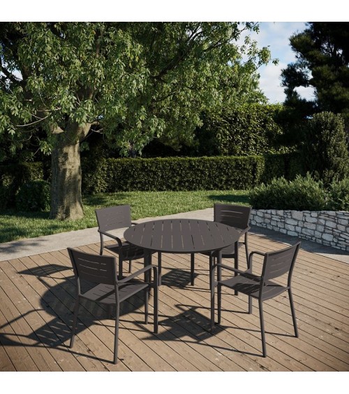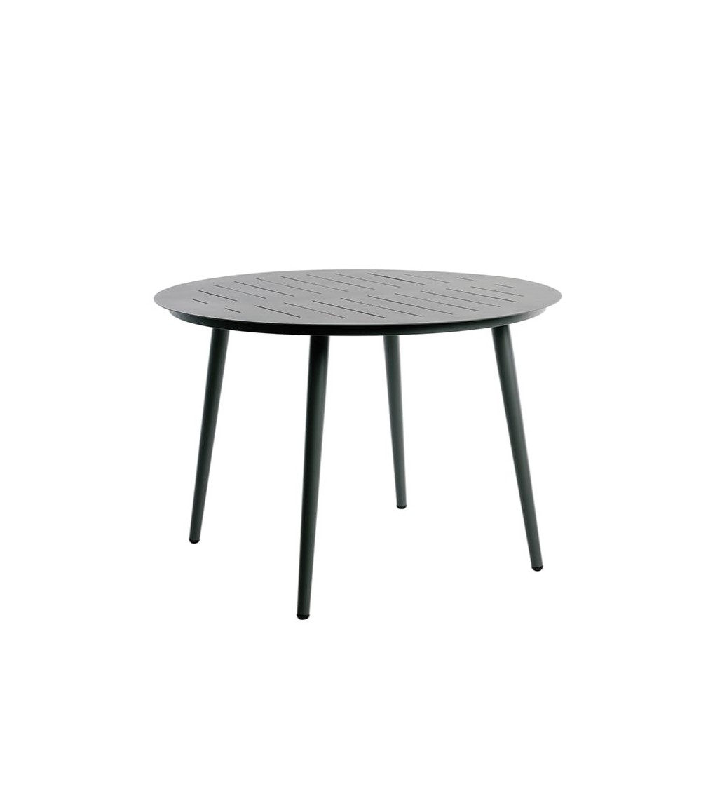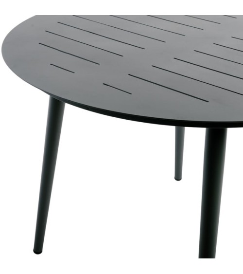 Une table ronde en aluminium pour aménager votre extérieur. Vous cherchez une table de jardin en aluminium ? Optez pour la table Inari avec son plateau ajouré qui peut accueillir jusquà 4 personnes. Dimensions : Ø 110 x H75 cm. Matière : aluminium. Idéale pour un petit extérieur à aménager comme une terrasse ou un balcon. Pratique par sa matière qui ne nécessite pas d'entretien. Peut accueillir jusqu'à 4 personnes. Disponible en couleur carbone. A monter soi-même.