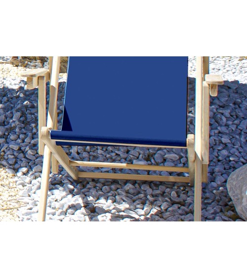 Produit à usages professionnels et particuliers. Chilienne de jardin pliante, avec accoudoirs, en toile 100% coton bleu et chassis 100% bois d'eucalyptus PEFC. Dossier réglable 4 positions. Toile amovible. Fabrication artisanale. Recyclable.DIMENSIONSDépliée : L 96 x l 61 x H 102 cmPliée : L 61 x l 6 x H 132 cmHauteur sol-assise : 46 cmHauteur sol-accoudoirs : 60 cmChoisissez les chiliennes professionnelles LONA pour aménager votre salle de restaurant ou votre terrasse.