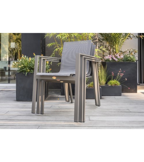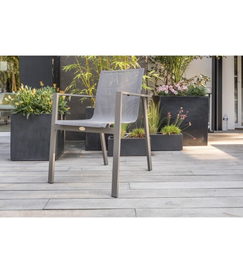Fauteuil de jardin empilable en aluminium et toile plastifiée taupe