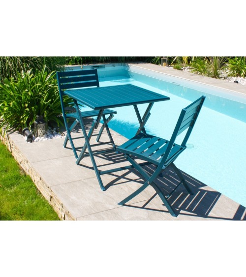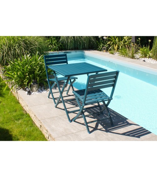 Produit à usages professionnels et particuliers. Chaise de jardin pliante en aluminium bleu canard.DIMENSIONSL 46 x l 41 x H 82 cmHauteur d'assise : 43 cmChaise pliée : l 46 x H 96 cmChoisissez les chaises de jardin professionnelles MARIUS pour aménager votre salle de restaurant ou votre terrasse.