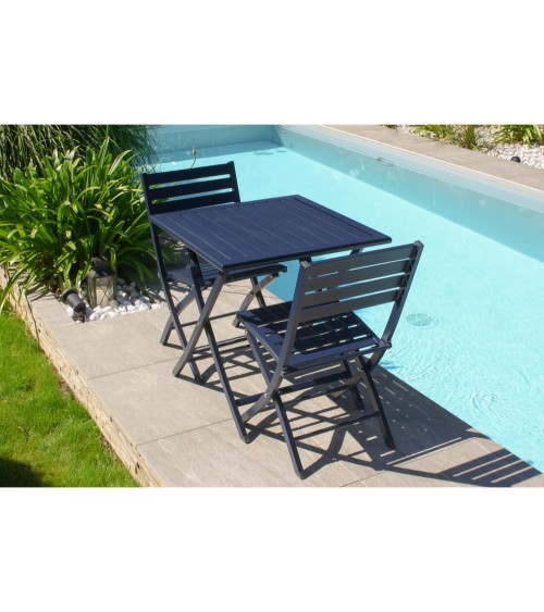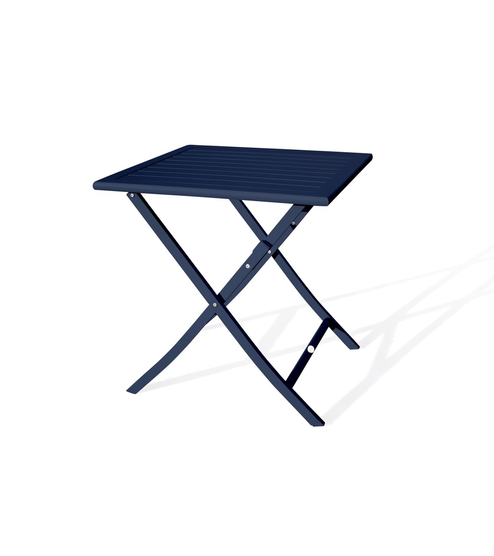 Produit à usages professionnels et particuliers. Table de jardin pliante en aluminium bleu marine.DIMENSIONSTable : L 70 x l 70 x H 73 cmTable pliée : L 70 x l 20 x H 100 cmChoisissez les tables professionnelles MARIUS pour aménager votre salle de restaurant ou votre terrasse.