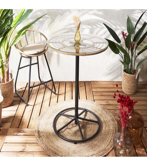 Aspect : Coloris : NoirMatériau principal : Verre trempéMatériaux secondaires : Acier Polyéthylène Dimensions : Diamètre (en cm) : 65Hauteur (en cm) : 100Autres caractéristiques : Poids (en kg) : 9,60 Table bar intérieur extérieur Surabaya