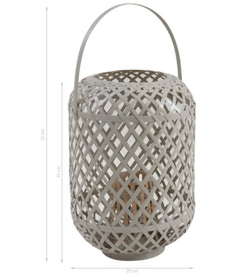 Aspect : Matériau principal : Bambou LaquéMatériaux secondaires : VerreDimensions : Diamètre (en cm) : 29,00Hauteur (en cm) : 57,00Autres caractéristiques : Information complémentaire : Nécessite une bougie non inclusePoids (en kg) : 1,25 Lanterne pour jardin en bambou laqué