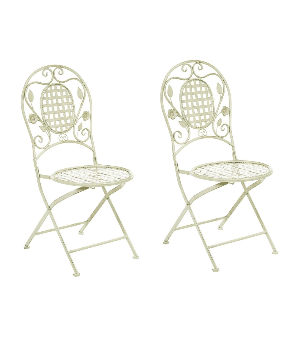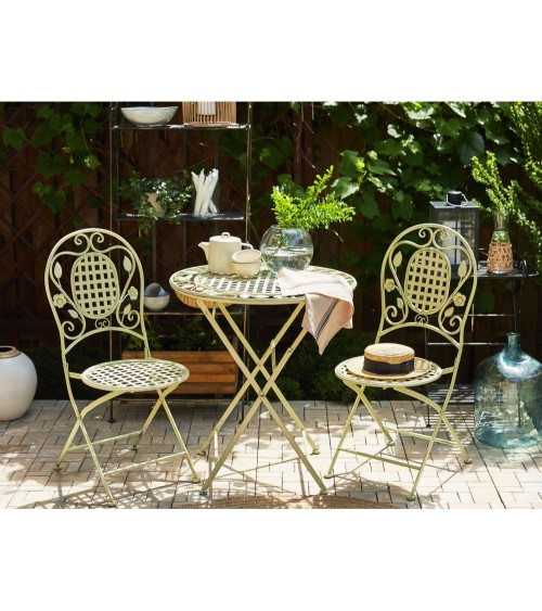 Des chaises de type bistrot qui sauront ajouter à votre balcon ou terrasse une touche de style provençal. Fabriquées à partir dacier enduit de poudre, elles charment avec leur effet vieilli et leur dossier ajouré, décoré déléments floraux. Associez-les à une table assortie pour créer le coin idéal pour un petit-déjeuner romantique à deux dans n'importe quel extérieur. Ces chaises sont pliantes, donc idéales pour tous les petits espaces et faciles à ranger hors saison.