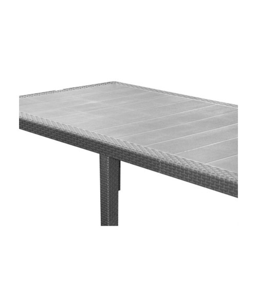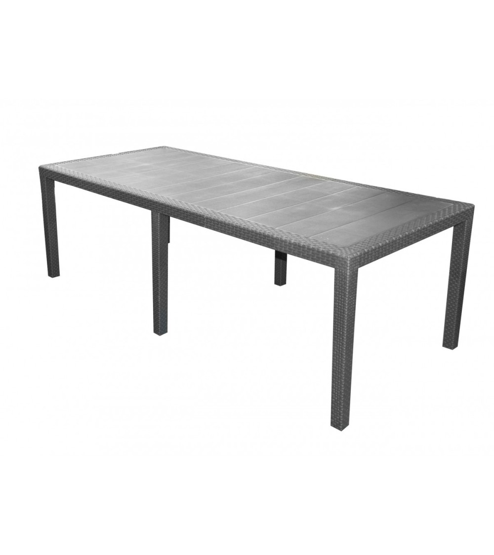 Table rectangulaire de jardin en plastique gris anthracite effet rotin.Dimensions: Hauteur 72cm x Longueur 220cm x largeur 90cmCouleur: GrisMatière: Plastique