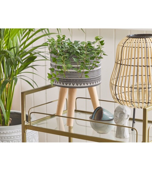 Ce charmant cache-pot est à la fois pratique et très décoratif. Il offre le support nécessaire à vos plantes et leur permet de gagner un peu en hauteur. Résistant à la météo, il peut servir daccessoire déco aussi bien sur votre terrasse ou balcon que dans votre salon. On craque pour ses trois petits pieds en bois et on l'imagine dans un intérieur scandinave ou bohème.
