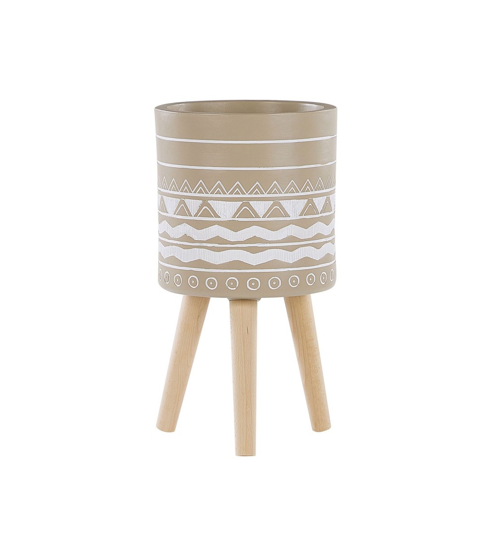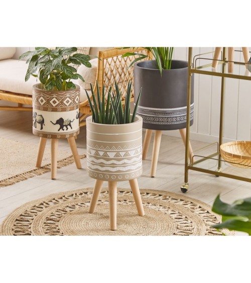 Mettez en valeur vos plantes préférées en les exposant dans des cache-pots décoratifs. Ce modèle a tout pour plaire : il peut être utilisé à lintérieur et à lextérieur, car il résiste bien aux diverses conditions atmosphériques. Sa couleur neutre et les trois pieds en bois créent de magnifiques contrastes avec le feuillage ; enfin, le motif ethnique peint à la main en fait un objet capable dapporter un souffle de fraîcheur dans votre environnement. Ce cache-pot est un must have pour les amateurs et amatrices de la déco scandinave et bohème.